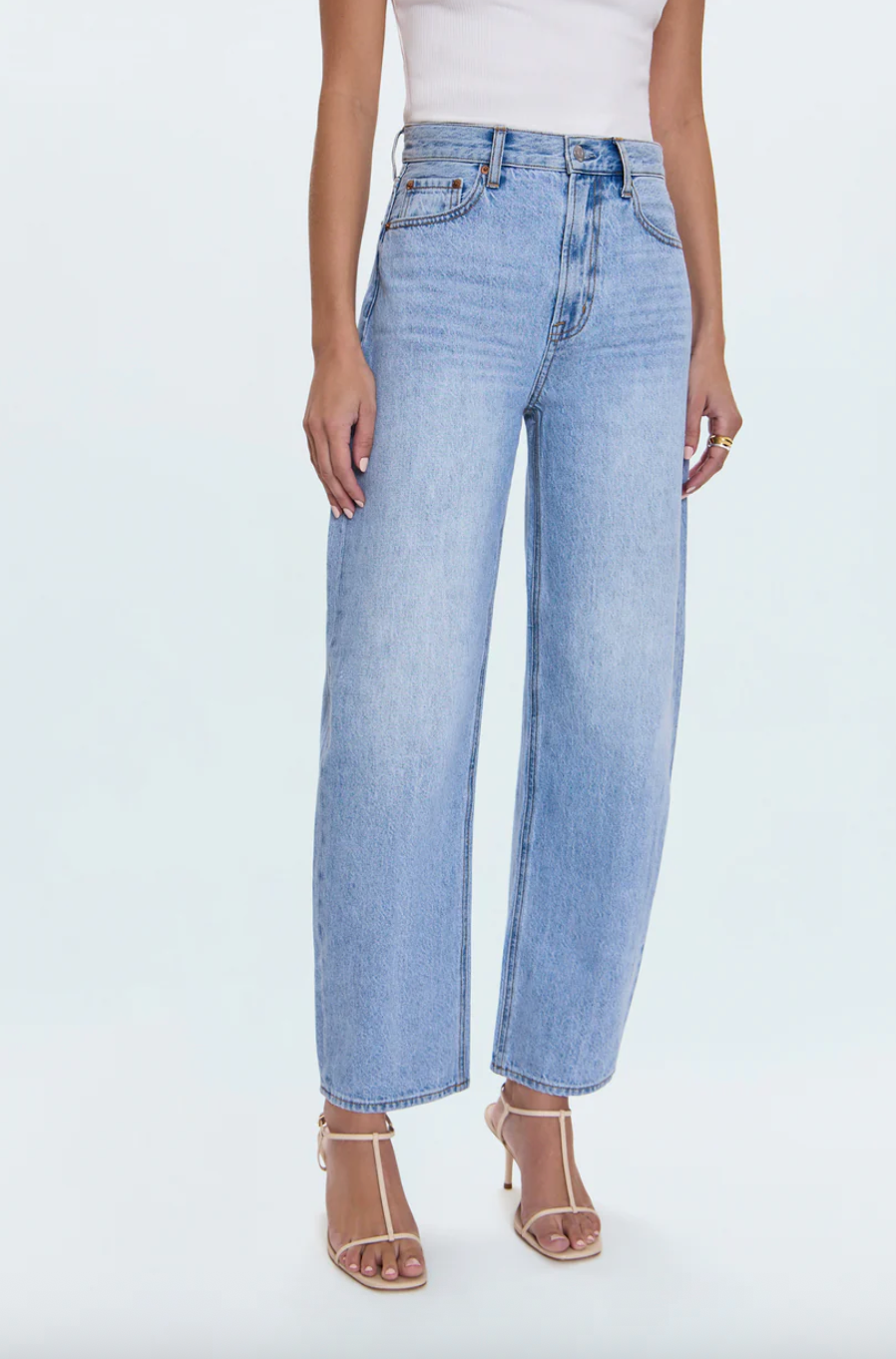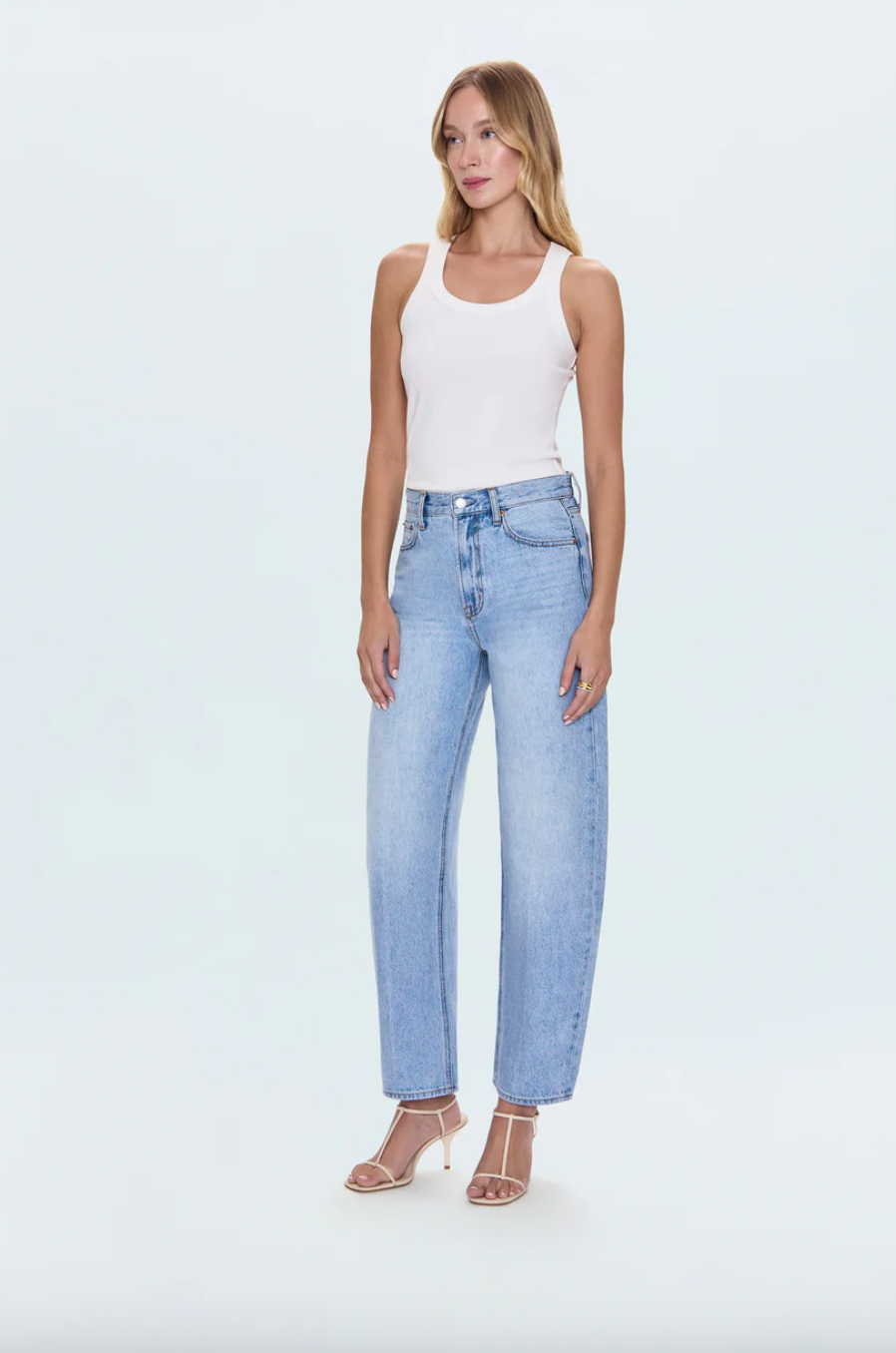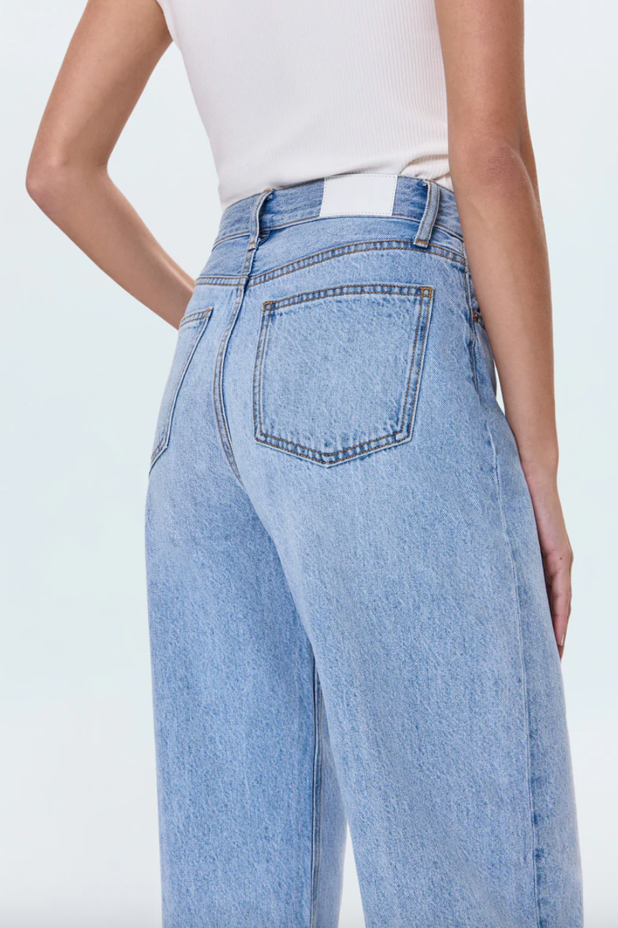 Meet Wes in Gaze, your new go-to for a modern, refined denim look. These jeans feature a flattering high-rise waist and a full-length 30" inseam, leading to a stylish barrel leg silhouette. Crafted from our premium rigid non-stretch denim, they provide an expert fit that truly holds its shape, ensuring a polished look all day long.